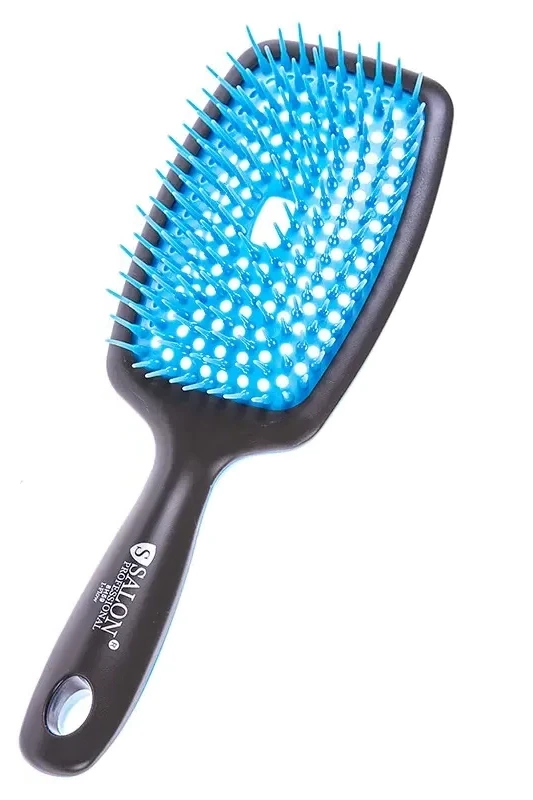 Щітка для розчісування (силікон) велика квадрат SALON графіт-блакитний- здатна легко і дбайливо розплутати