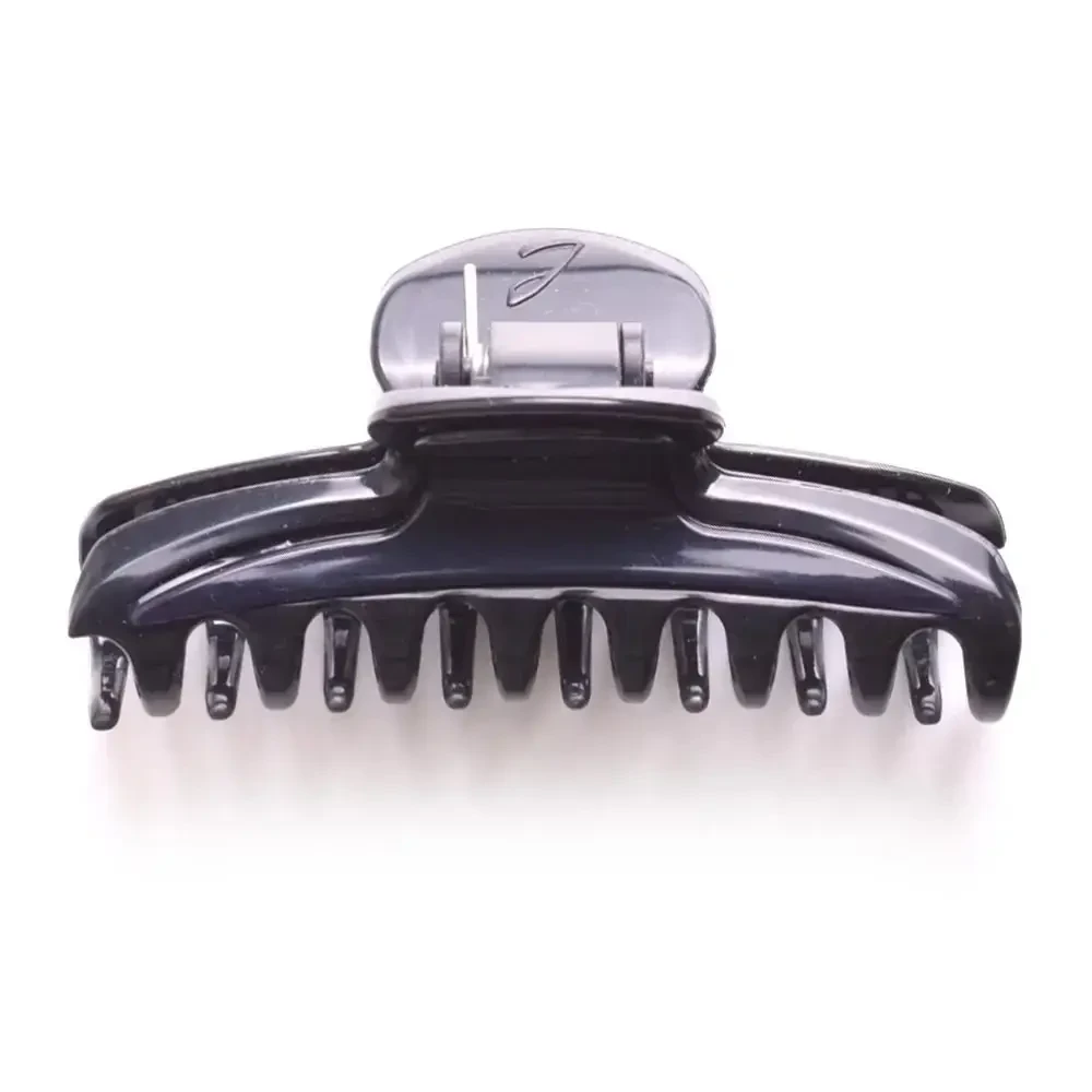 Краб чорний прямокутний з чорною серединкою JANEKE - оснащений спеціальним механізмом на металевій пружині, діючим легким натиском. Для виготовлення виробу використовували високоякісний пластик, який гідно перенесе активну експлуатацію і гарантує зачіску. Аксесуар стильний, зносостійкий, ергономічний. Розмір: 7x2,6 см