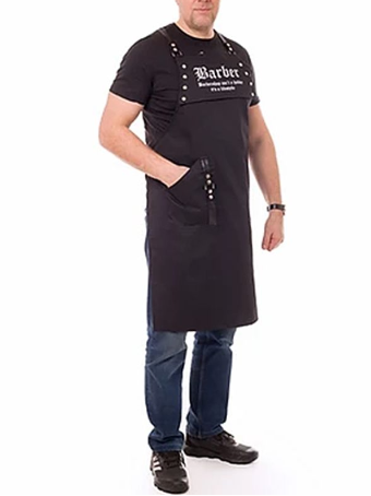 Aleks Style Фартух для майстра Barber - універсальний фартух для майстра, з двума боковими передніми кишенями для гребінців, шпильок або інших аксесуарів для волосся. На грудях є стильне відділення з написом Barber, написаним білим кольором крутим шрифтом.